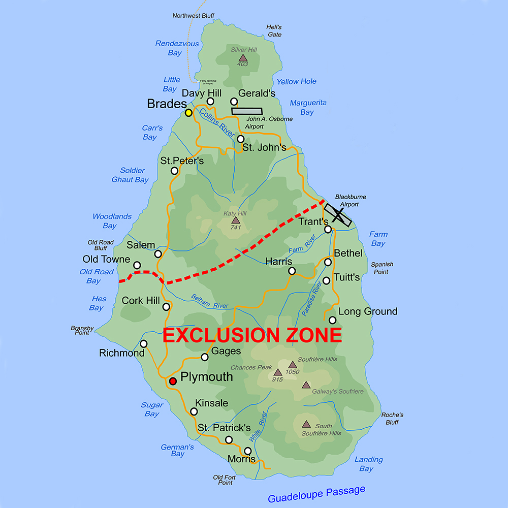 Plymouth is the former capital but subsumed by the volcanic eruption back in 1995-1997. Today the town is referred to as “Pompei of the Caribbean”. In the city you can see buildings and hillside homes covered in ashes with just the tops visible.
